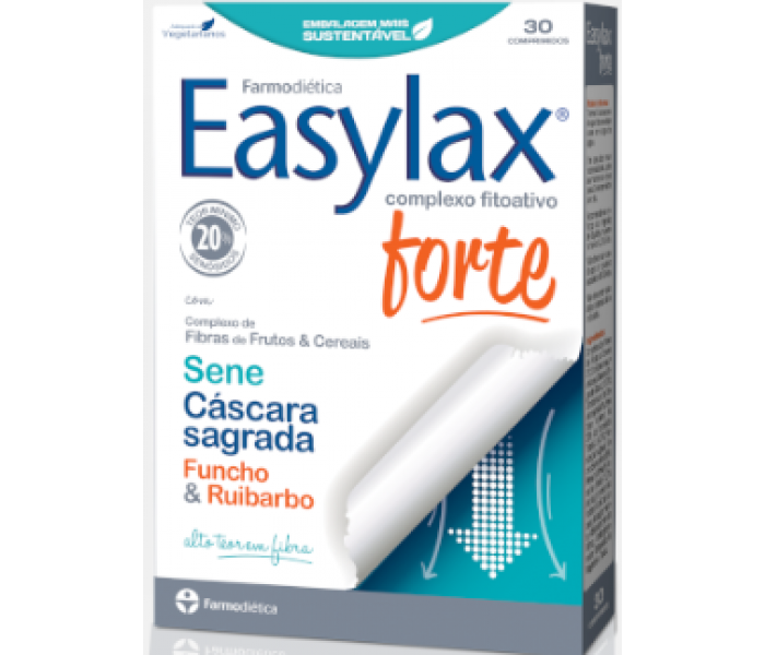 Easylax® Forte é um suplemento alimentar que contém plantas de utilização tradicional, tais como cáscara sagrada, sene, funcho, ruibarbo e ainda um complexo de fibras de frutos e cereais. O extrato de sene presente na formulação está padronizado num teor mínimo de 20% de senósidos totais, de forma a garantir a sua eficácia.