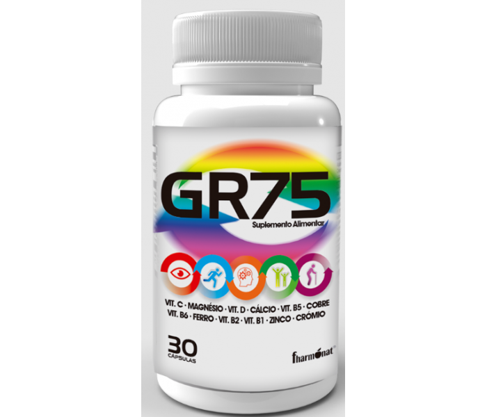 GR 75 é um suplemento alimentar rico em vitaminas utilizado em casos de carência alimentar, desnutrição, anorexia, como suplemento a desportistas idosos e adolescentes, possui propriedades diuréticas, estimulantes e energéticas, remineralizantes e drenadoras.