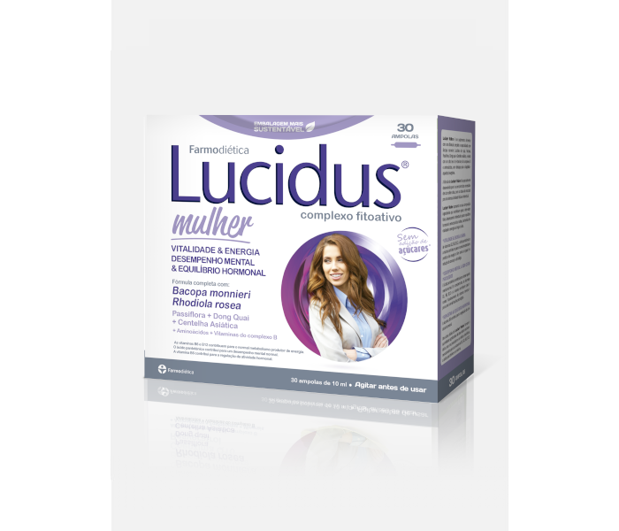 Lucidus® Mulher é um suplemento alimentar com uma fórmula completa e especializada com Bacopa monnieri, Rodiola, Passiflora, Centelha asiática, e ainda com um alto teor de vitaminas do complexo B e aminoácidos.