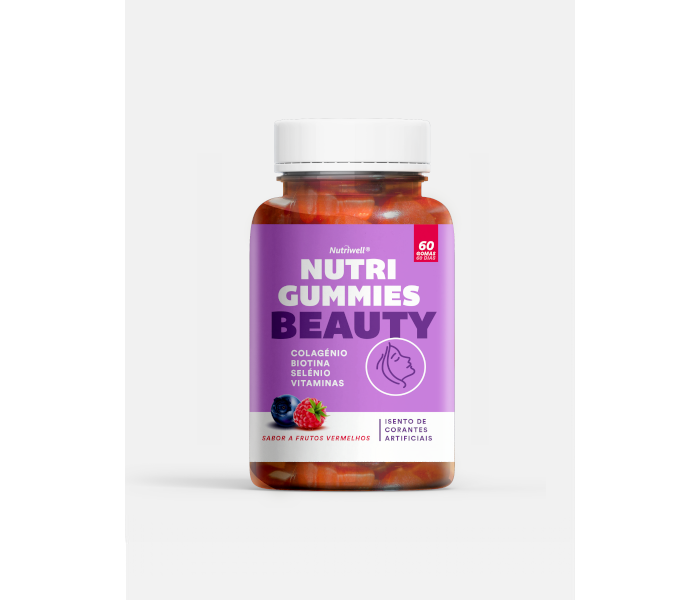 Nutrigummies BEAUTY é um suplemento alimentar, com aroma a frutos vermelhos, com Colagénio e que contém alto teor em Selénio e Vitamina E, A, C e Biotina. O Colagénio fornece suporte estrutural aos tecidos, contribuindo para um efeito antienvelhecimento.